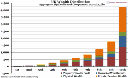 Half the population has negligible amounts of wealth, and disposable assets are effectively restricted to just the richest 30%. The situation will be even more acute post-pandemic than shown in this chart, which is not cumulative – the totals in each column are the total wealth in that decile.