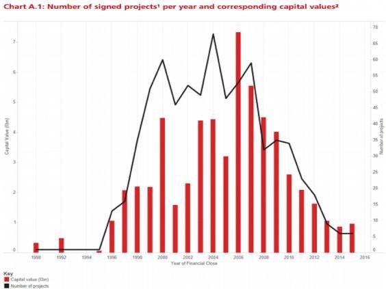 Yet the chart shows that it was the Labour Party, with Gordon Brown as Chancellor, who bore the main responsibility for putting these projects in place: indeed Andy Burnham, Mayor of Manchester, was good enough to acknowledge this on the BBC’s Question Time last Friday.