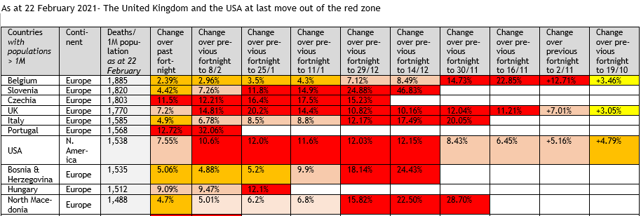 And finally - our fortnightly analysis of Covid-19 mortality rates, showing some improvement:
