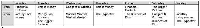 Key speech programme output times will be scheduled to follow the 9 am news each morning and the 2 pm news each afternoon. The schedule is planned as follows: