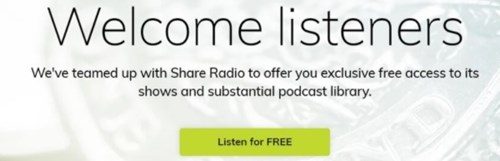 Listeners will continue to register - just once - for access to this free service, and we will therefore be raising the profile of partner-enabled access; and we encourage you to register via www.sharefound.org/shareradio from now for free access: