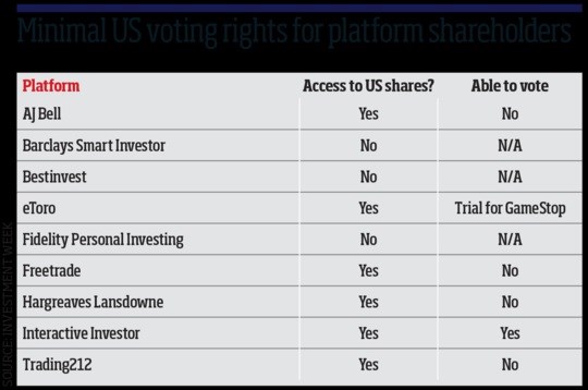 At the personal investor level, only Interactive Investor has a demonstrably effective service which enables investment across the wide spread of American businesses, and it's interesting to note in a comparison on platform US voting rights from Investment Week that only ii provides voting rights on US stock held by British investors.