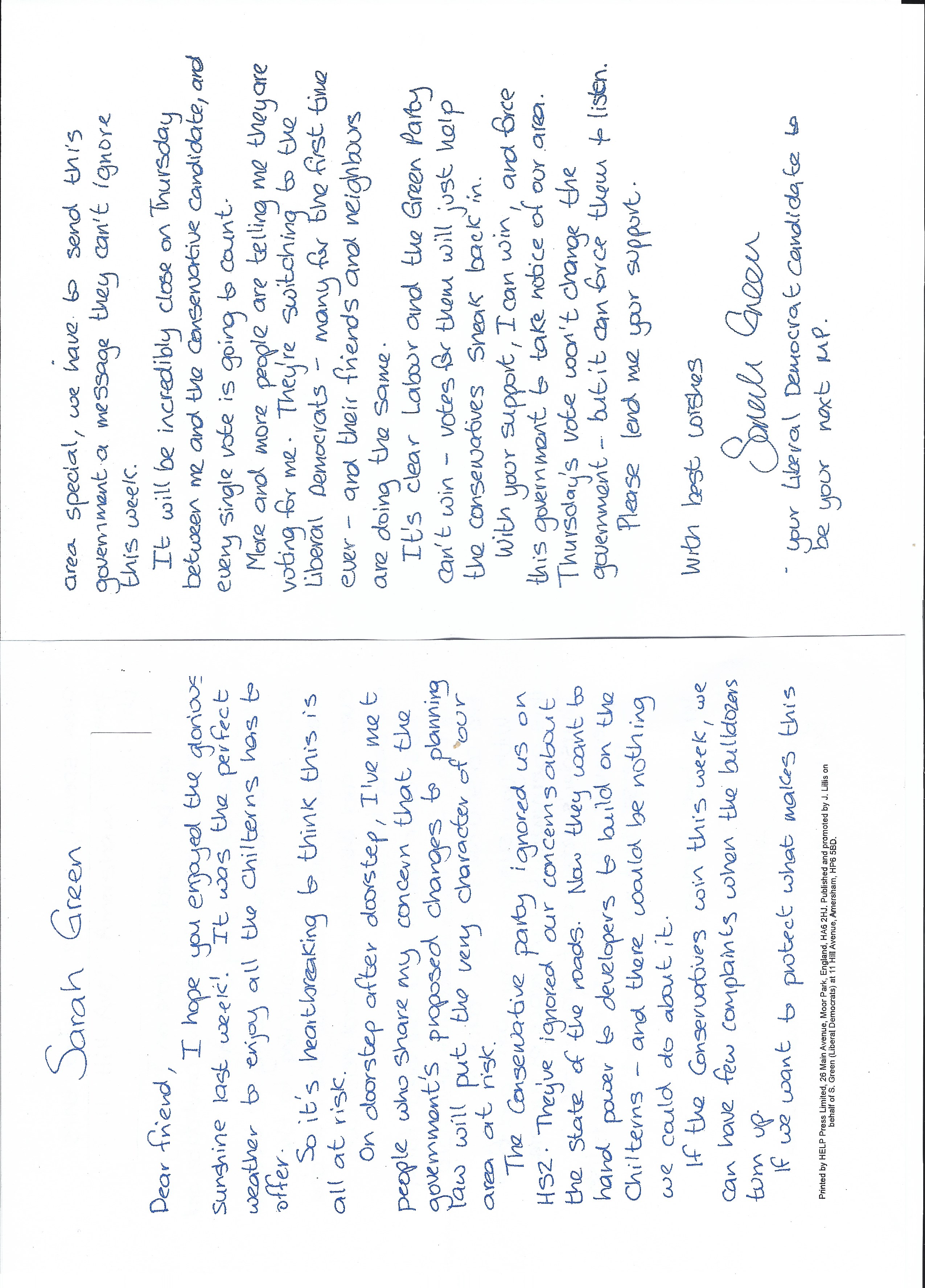 Both Conservatives and Liberal Democrat candidates stated their opposition but this inconsistency with their Party policy only stuck to the former. Sarah Green managed to present herself as the local champion and she won the seat convincingly.