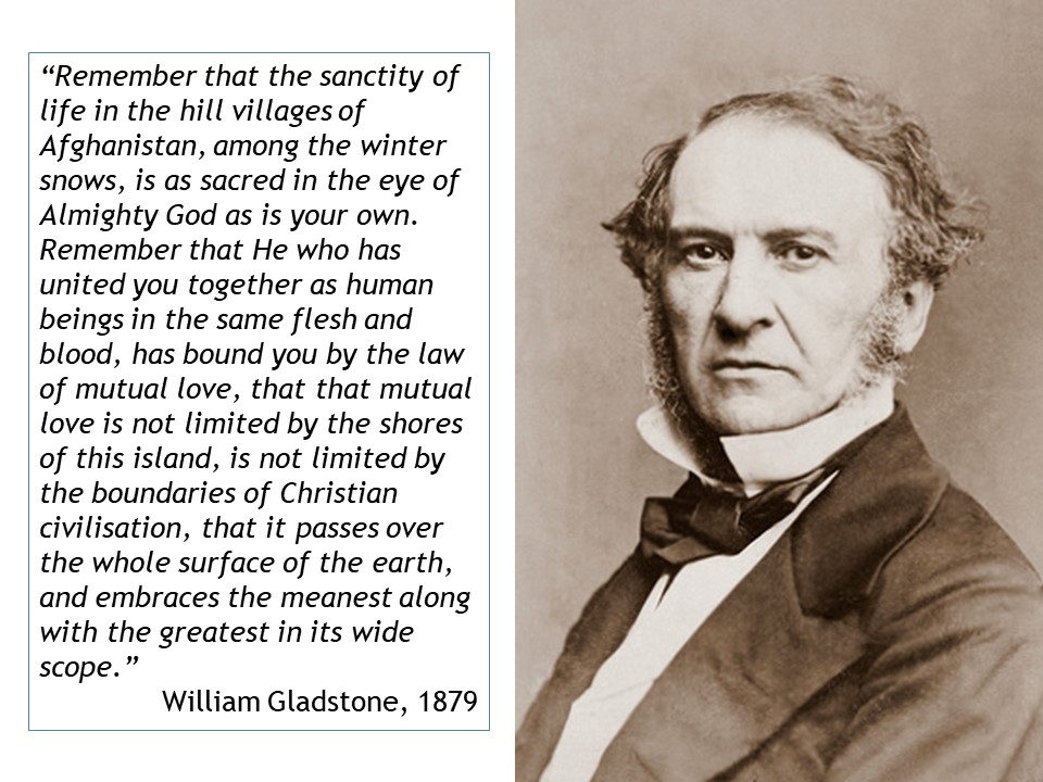 “Remember that the sanctity of life in the hill villages of Afghanistan, among the winter snows, is as sacred in the eye of Almighty God as is your own”