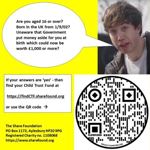 And The Share Foundation continues to tackle the challenge of linking billions of pounds in Child Trust Fund accounts for the benefit of huge numbers of disadvantaged young people - and we seek your help here in getting the information out for these young people.