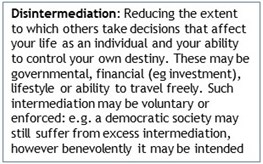Disintermediation is a hard thing to understand, let alone embrace; there are few leaders in the free world who can really claim to understand the servant leadership that it calls for. Certainly not Trump: but those liberal and social democrats who understand social justice also find it hard to set systems in place for individual empowerment, independent of a controlling state.