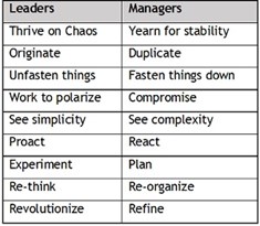 I’ve borrowed the title of Richard Higginson’s inspiring book ‘Transforming Leadership’ for this ‘Thought for the Week’; in it, he quotes from another book called ‘Mind of a Manager, Soul of a Leader’ by Craig Hickman. The table from that book contrasts some of the characteristics which define these complementary roles.
