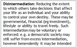 Adam Smith was therefore right to extol the benefits of free market competition: individual choice ensures that organisations respond to demand by focusing on customer service. Subservience to monopoly suppliers not only denies individual freedom but it also embeds organisational inefficiency — another reason why we put so much emphasis on disintermediation in our quest for a more egalitarian form of capitalism.