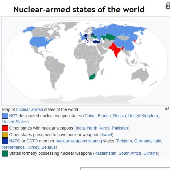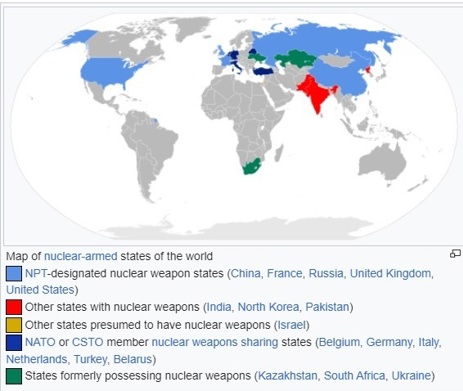 Five countries were considered nuclear weapon states under the 1970 Non-Proliferation Treaty: the United States, Russia, the United Kingdom, France and China. Other states that possess nuclear weapons are India, Pakistan and North Korea, and Israel is generally understood to have them as well; meanwhile Iran is thought to be close to joining this group of nations.